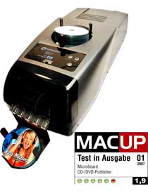 | Microboards Quick Disc Loader Der platzsparenste automatische CD/DVD Duplicator seiner Klasse Über das Gerät Einfachste Handhabung in Sachen Labelerstellung, brennen und drucken auf eine CD oder DVD! Mit einer Kapazitaet von 50 disc, einem hochgeschwindigkeits CD/DVD Laufwerk und einem integrierten Tintenstrahldrucker ist der Microboards GX Disc Publischer die perfekte Loesung, um kleine Jobauftraege professionell mit geringem Zeitaufwand abzuwickeln. Der Microboards GX2 stellt mit seinem einzigartigem Design und niedrigen Kostenaufwand ein profitables Büroutensil dar. Einmal den Druck- bzw. Brennjob in Auftrag gegeben, koennen Sie den GX2 alleine lassen und sich den wichtigeren Sachen zuwenden. Die Arbeit verrichtet von nun an der GX2. Der Publisher brennt jedes CD und DVD Format inklusive Doppelbeschichtung. Bedienung Mit einem USB 2.0 Verbindungskabel zwischen ihrem PC oder Mac und dem Publisher, verwandelt sich der GX-2 zu einem Alles in Einem Paket. Der Microboards GX-2 ist das Einstiegsmodell in der Publisher Reihe von Microboards. Mit einem Durchmesser von nur ca 35 cm findet das Gerät spielend in jedem Büro platz. Das Gerät enthält bei Auslieferung 2 Softwareprogramme. Prassi Tech’s Zulu2 ermoeglicht das Erstellen des Masters. SureThing der Labeldesigner fuer Windows 2000 & XP bzw. Charismac Discribe für den MAC ermoeglicht professionelles Gestalten der CD / DVD Label. Oder importieren Sie einfach ihr selbst kreiertes Image von Photoshop oder anderen Graphikprogrammen. Satter Farbdruck sowie komplette Farbabdeckung auf den Discs sind selbstverständlich.